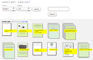 Constant Verlag is a repository of texts from the depth of the Constant Archives. Some of those texts were already available on line, others just saved on one of our harddrives; some written in French, others in English or Dutch; recent or as early as 1997. As most texts have been published under open content licenses, you are invited to use, copy, modify and redistribute the material.
