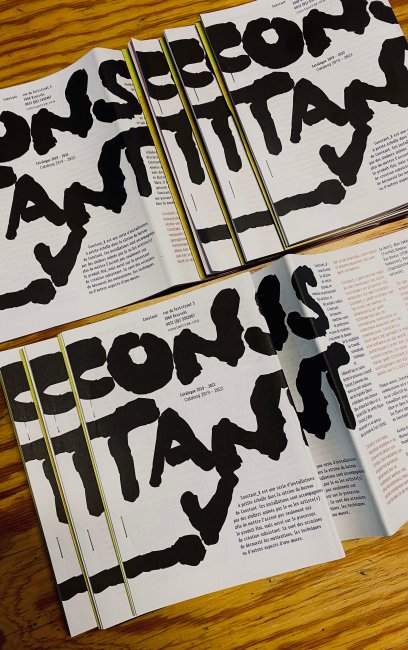 We were thrilled to announce the publication of the latest catalogue for the Constant_V project. This catalogue offers a retrospective glimpse into the vitrines conceived from 2019 to 2022, showcasing the incredible work of various artists.