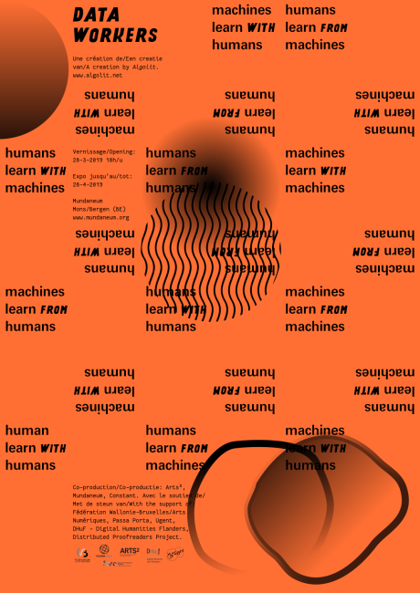 Data Workers est une exposition d’œuvres algolittéraires, des histoires racontées d’un point de vue de la ’narration algorithmique’. L’exposition est une création des membres d’Algolit, un groupe bruxellois impliqué dans la recherche artistique sur les algorithmes et la littérature. Chaque mois, ils se réunissent pour expérimenter avec du code et des textes F/LOSS. Certaines oeuvres sont réalisés par des étudiants de Arts² et des participants à l’atelier externe sur l’apprentissage automatique et le texte organisé par Algolit en octobre 2018 au Mundaneum.