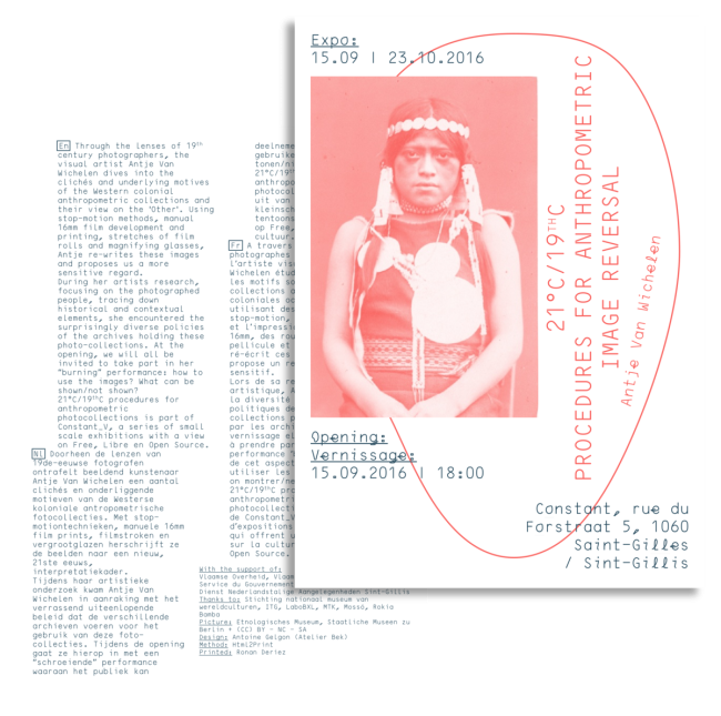 Chaque année, Constant commissionne un graphiste ou un collectif de graphistes qui travaille avec des outils Free, Libre et Open Source-gereedschappen, pour créer les flyers bimensuels de Constant_V.