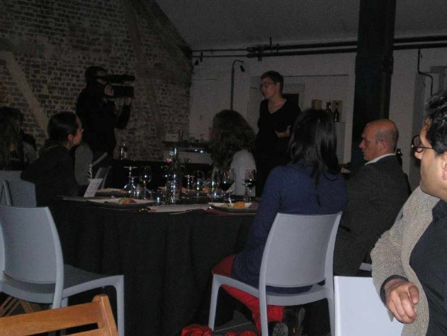 Femke Snelting droeg bij aan het grootse FoAM Open Sauces diner met een toast op koken zonder redundantie.