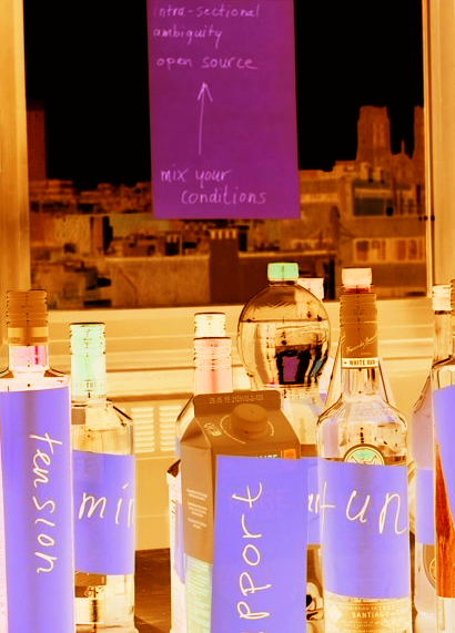 Constant contributes with Collaboration guidelines, a set of rules, modes and expectations that suggest and question ways of being together. The installation is based on the commitment and guidelines for collaborative situations that Constant is currently formulating. They are presented in a setting that invites you to relax, to reflect and discuss. The space is colourfully lit by a LED display developed by Michael Murtaugh which runs through changes in the Constant collaboration guidelines as they are being written and rewritten.
