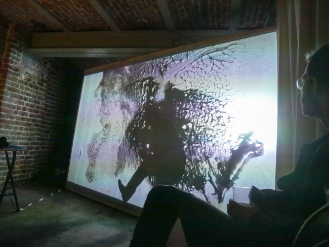 I form the vision of a black ink drop falling in my eye, bringing a recollection of the possible. I see each and every hesitation, trembling, shaking like an oscillography of my flesh, magnetically charged. Those objectivised vibrations in front of us are spread and spattered spores, generating other hesitations, doubts, ... slides of an oriented gesture. I partially charge my flesh with a strong craving, something obsessing me. I gather liquid from my liver on blottingpaper. Drops of an (id)entity "¦